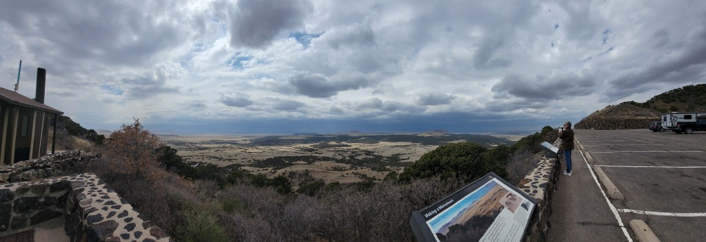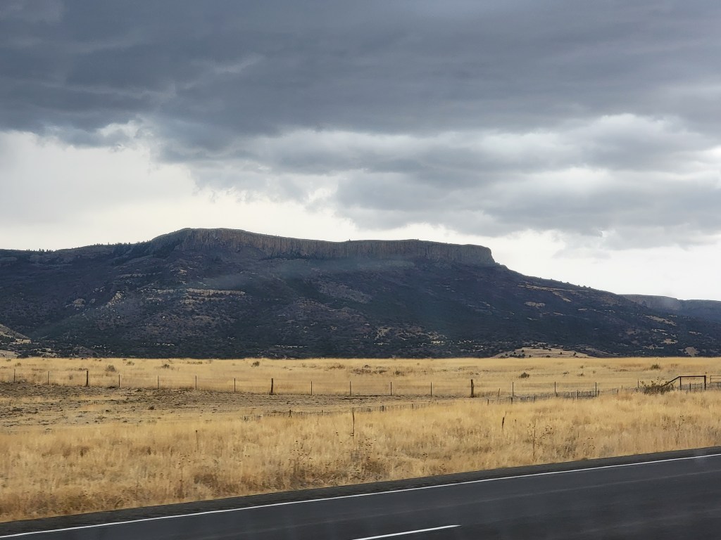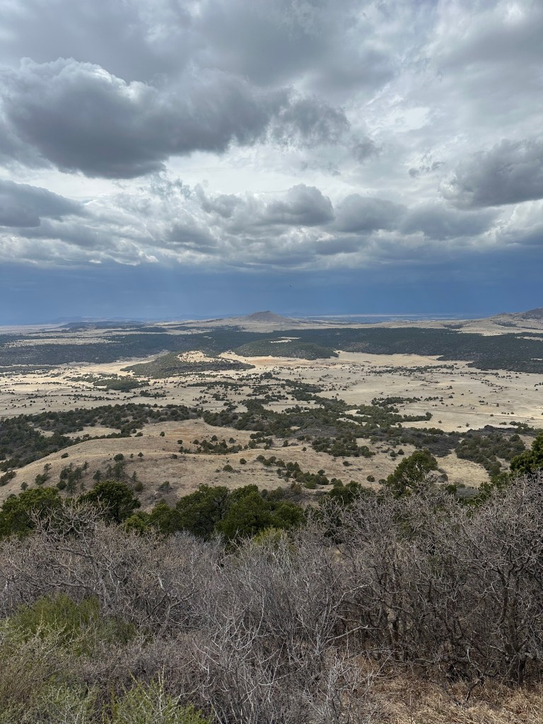 We drove on and crossed into New Mexico following the Santa Fe trail with dramatic weather changes. Our second stop was Capulin Volcano near Raton. We drove up to the rim and walked down to the crater. Capulin Vulcano which was active 600,000 and sits at over 8,000ft / 2400m.
